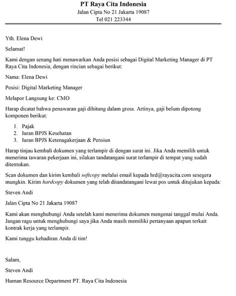 Contoh Surat Offering Letter: Panduan Komprehensif